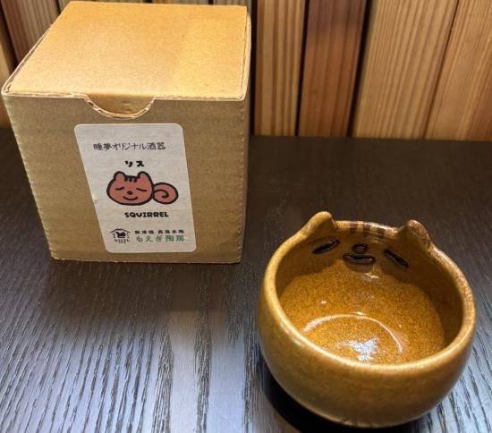 新津焼の睡夢オリジナルおちょこ 『りす』です。